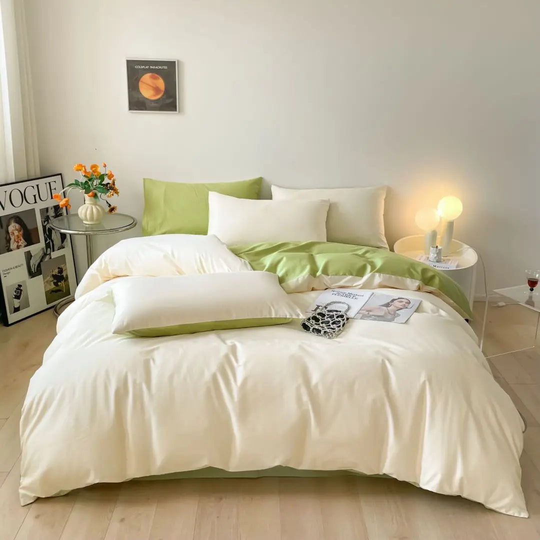 エジプト綿100% 無地掛け布団カバー(400TC/ファスナー&四隅ヒモ)