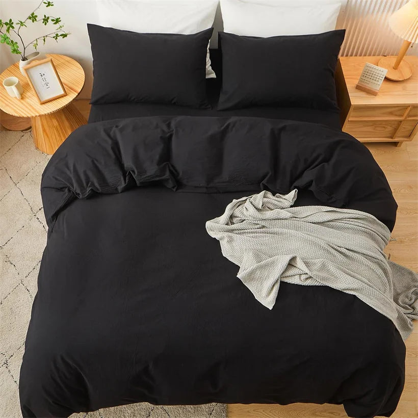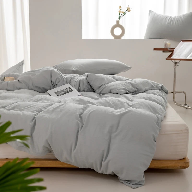 洗いざらし仕上げのコットンが、さらっと心地よく体に沿います。装飾を抑えたミニマルな無地で、和モダンや北欧、どんな寝室にもすっとなじむデザイン。季節を問わず毎日使える定番カバーです。